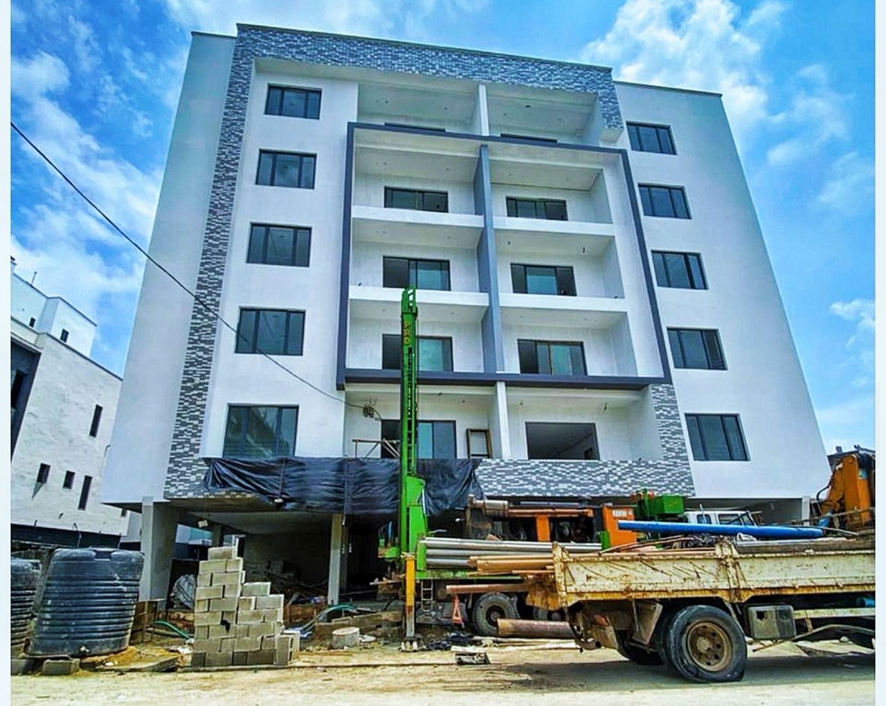 -Fully fitted kitchen with refrigerator, heat extractor, gas burner, washing machine